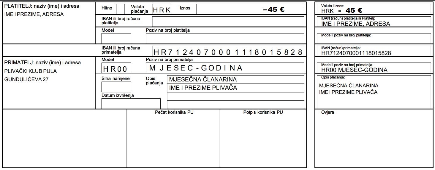 Molimo Vas da prilikom dolaska na prvi trening dostavite upisnicu u Plivački klub Pula koja se nalazi sa desne strane.